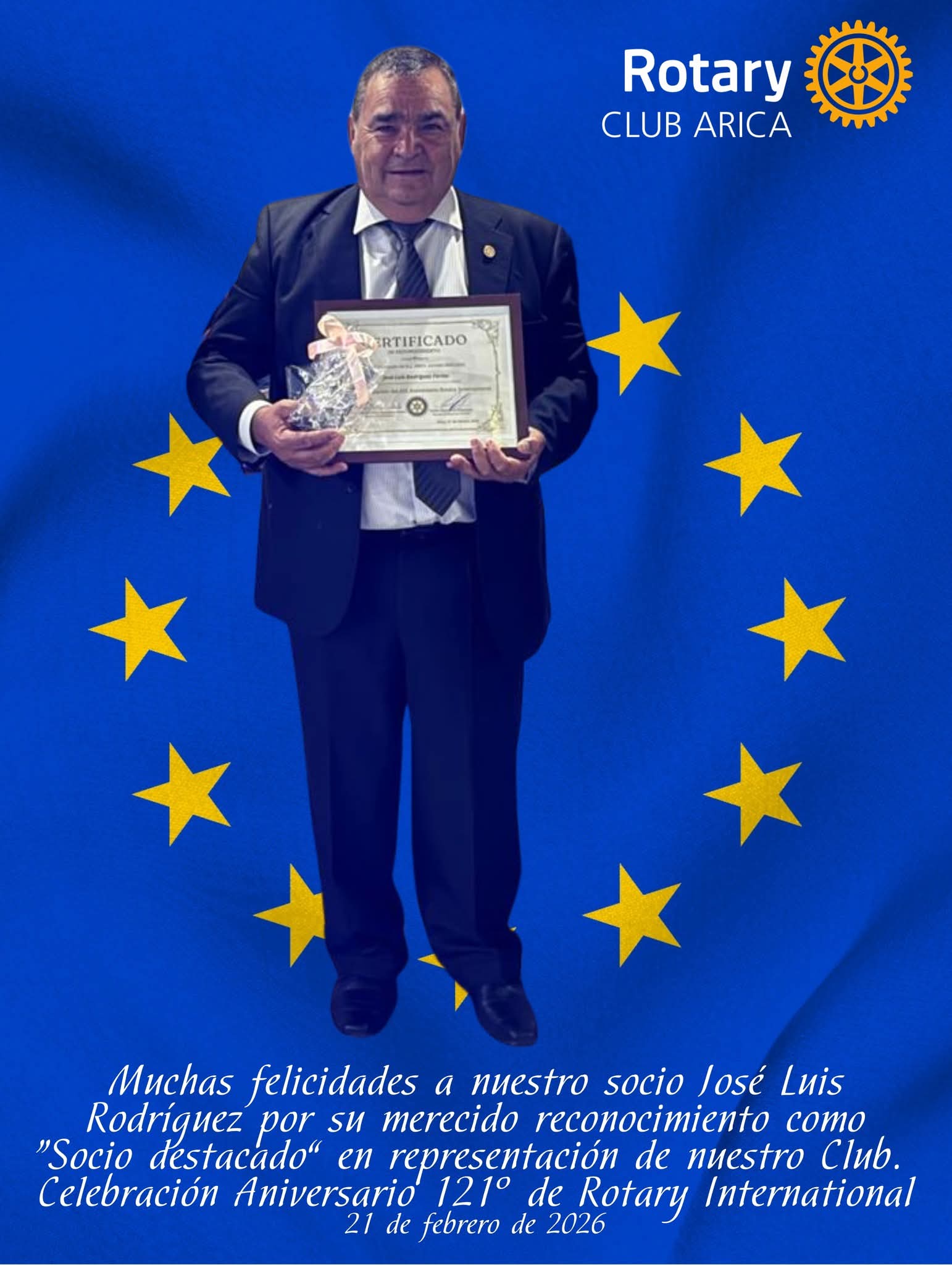 Se participa en la celebracion de 120 años de Rotary, se felicita a al uno de los nuestro quedando en Jose Luis Rodriguez